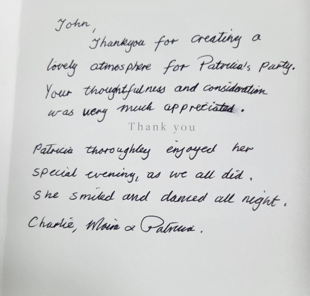 A special thank you to one of my recent customers who sent me a lovely card just to say thanks for a great night – I really appreciate it, and big thanks to you and your family!